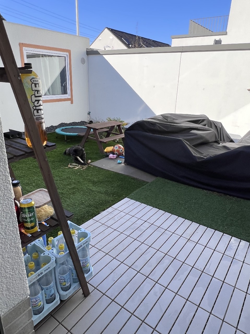 Sonnige Terrasse mit direktem Zugang zur Garage